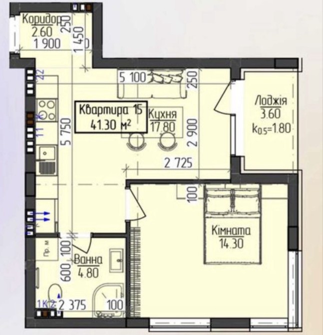 Загальна площа -41,5м2
