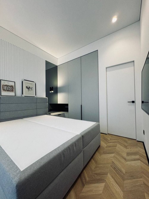 Спальня — окрема, тиха і дуже затишна. Велике комфортне ліжко з якісним матрацом, стильні меблі для зберігання речей та продумане зонування.