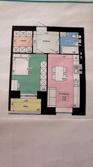 Квартира 41.6м загальної площі, 11.48 житлова, балкон , лоджія з кімнати, просторий передпокій і гардеробна.