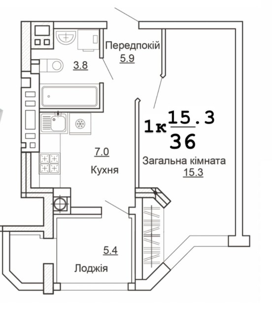 Просторе планування з житловою площею 15м2!