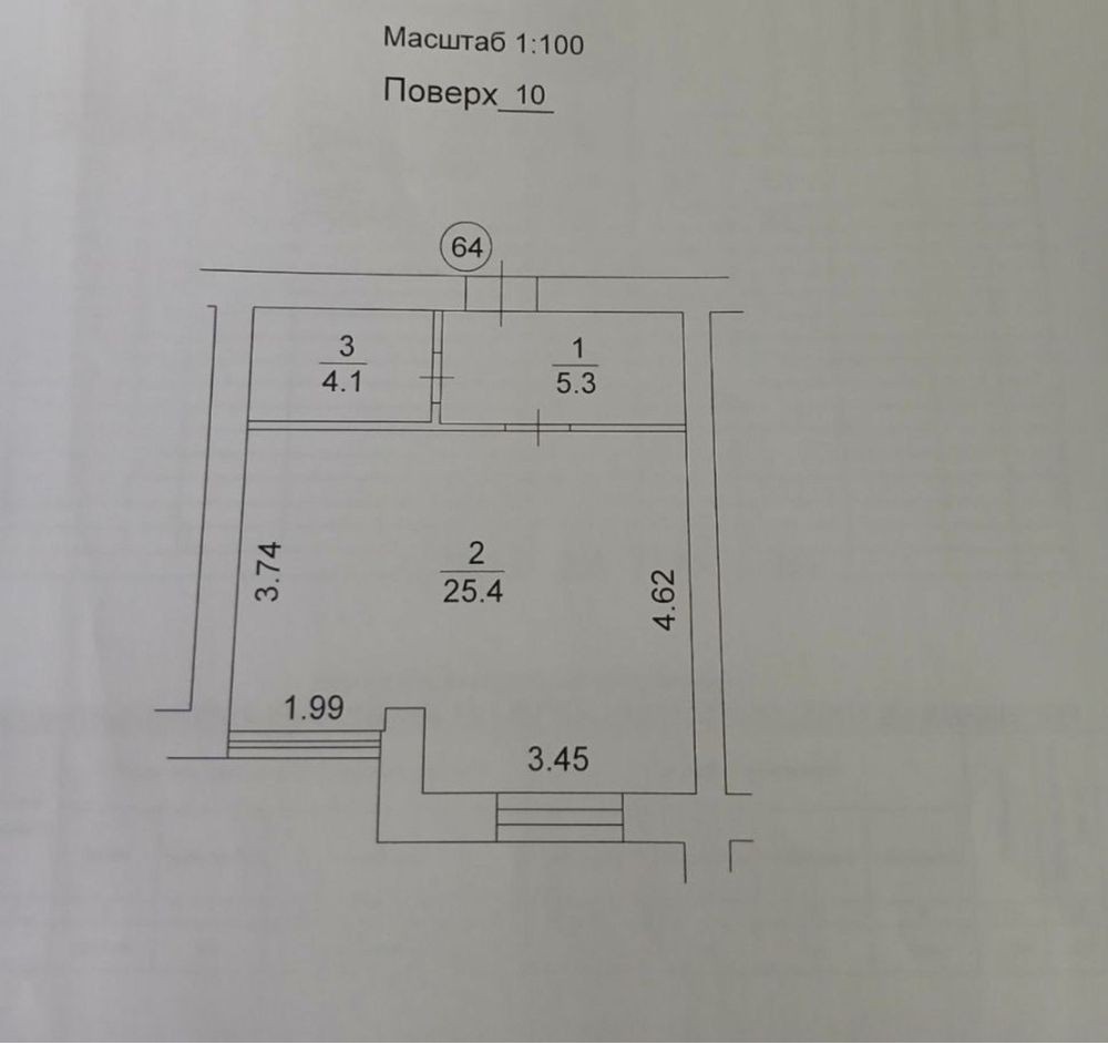 34,8м кв, студія з можливістю зробити окрему кімнату