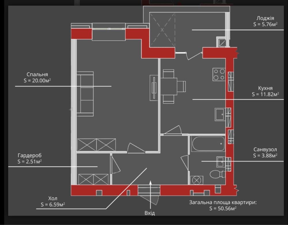 • Общая площадь 50.7 м2