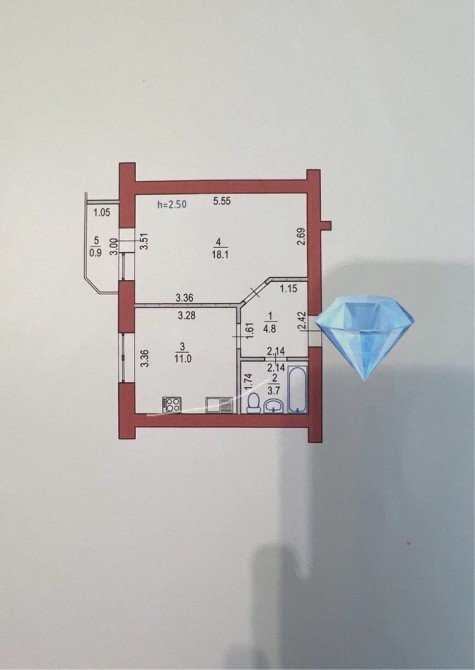 Загальна площа – 38,5 м²