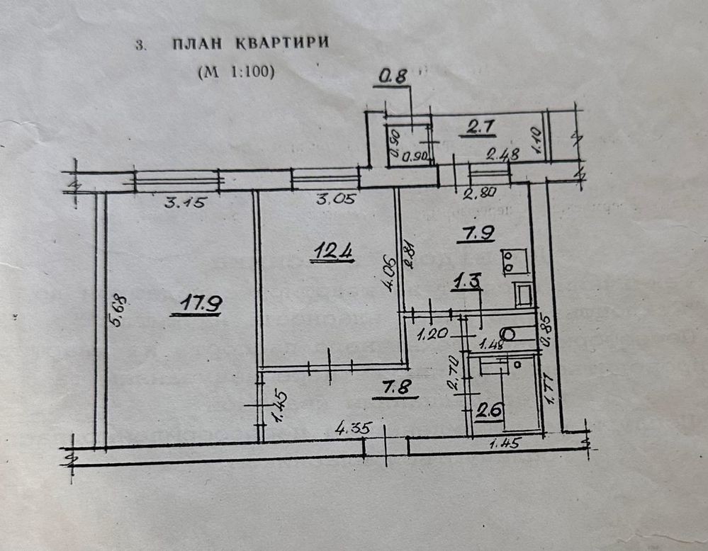 • Площадь кухни 7.9 м2