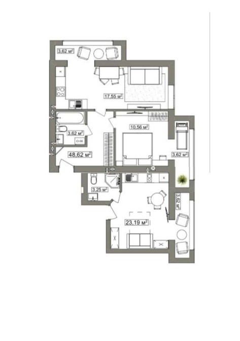 Велика, світла, простора квартира вільного планування загальною площею 75 кв.м.