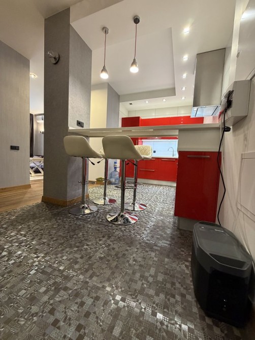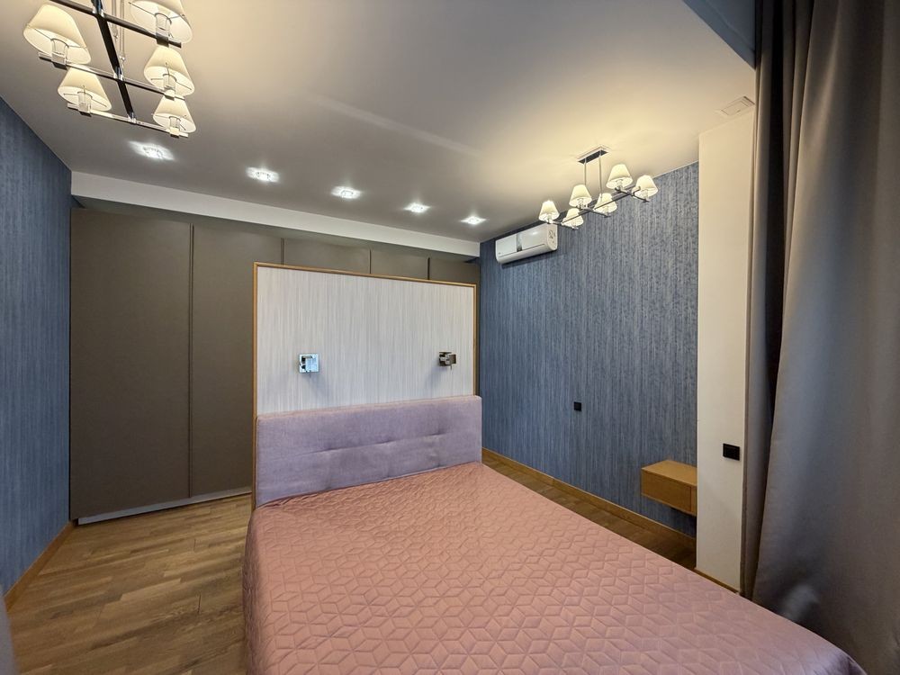 У квартирі виконаний сучасний якісний ремонт із використанням добротних матеріалів. По всій площі встановлена система теплої підлоги, є кондиціонери, підлога — натуральний паркет. Панорамні вікна створюють відчуття простору та відкривають приємний вид на зелену частину району.