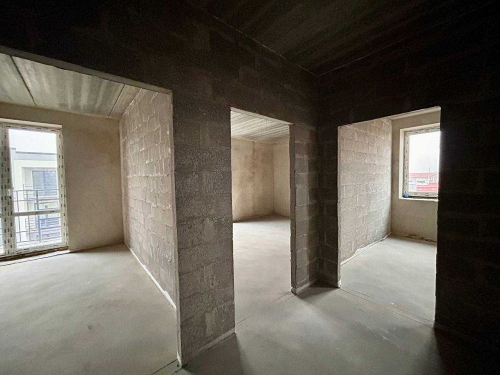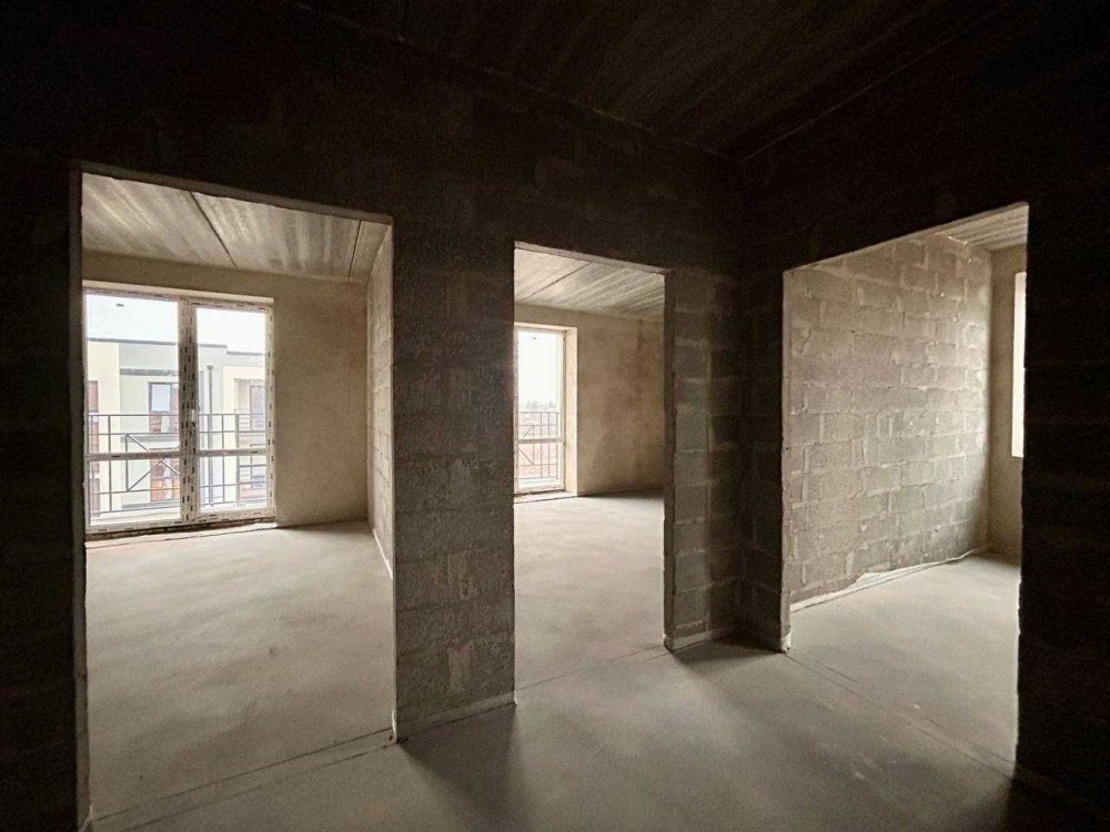 В квартирі чистова стяжка на підлозі, штукатурка несучих стін, вхідні двері, двері на балкони;