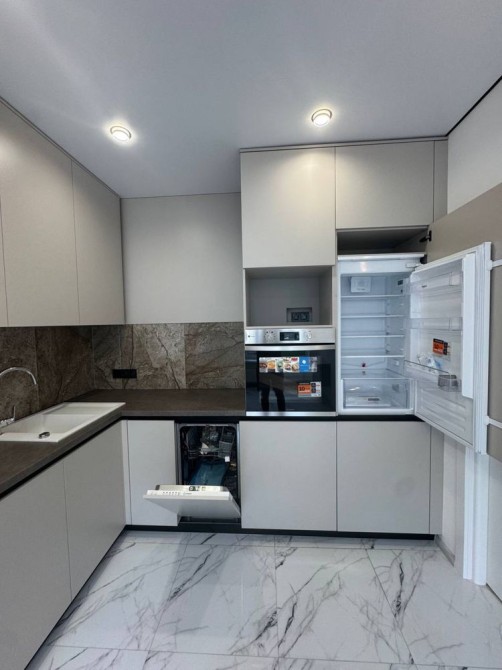 Всім укомплектована: кухня, вбудований холодильник , духова шафа, варильна поверхня, посудомийка.