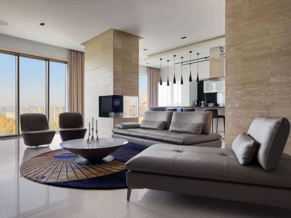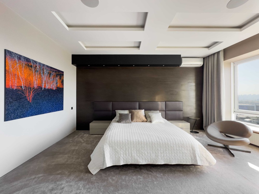 Для кожного приміщення автори проекту квартири преміум-класу у Києві на Оболоні розробили схеми підведення електрики та опалення. Ремонт та оформлення вищої якості, без компромісів: ергономічна німецька кухня, Nolte Küchen, преміальні бренди сантехніки, світильників, меблів, побутової техніки, оздоблювальних матеріалів, домашнього текстилю.