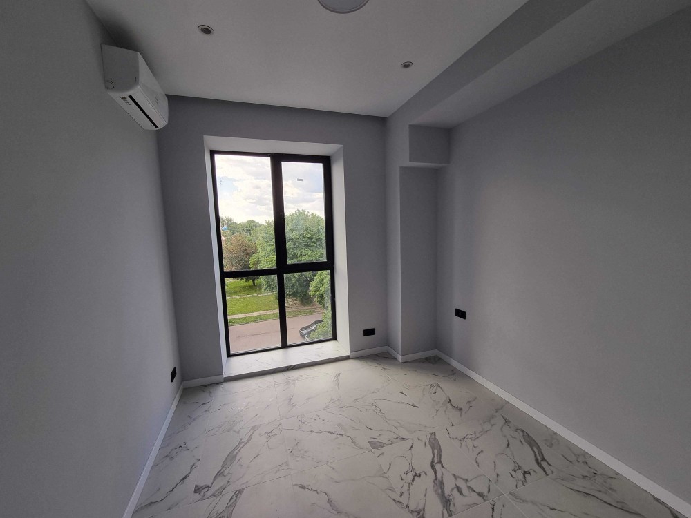 Квартира з новим ремонтом, ще ніхто не проживав! 2 окремі спальні, простора кухня-студія з вбудованими меблями і технікою, гардеробна, велика ванна кімната з новою сантехнікою. Зовнішнє утеплення стін, панорамні вікна з двокамерними склопакетами, високі стелі 3,10м, тепла підлога у свій квартирі, кондиціонери в кімнатах, вид на парк.