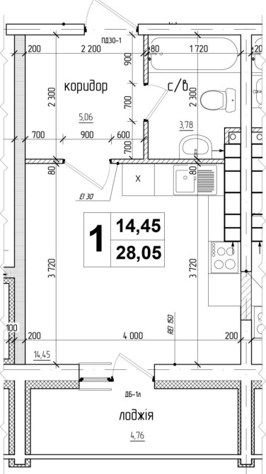 • Общая площадь 28 м2