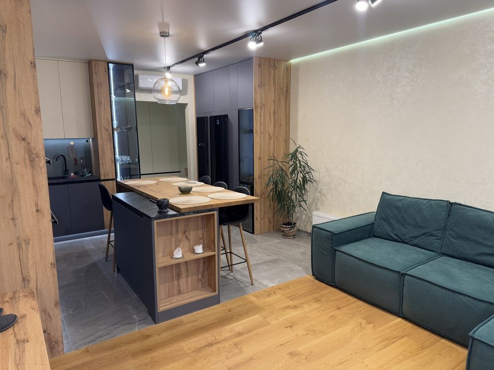 Двокімнатна простора квартира з дизайнерським ремонтом в ЖК Krona park 2. У квартирі дубовий паркет, якісні меблі, виготовлені на замовлення з натурального дерева, підігрів підлоги в санвузлі, сенсорні вимикачі. Житло укомплектоване якісною побутовою технікою, встановлено 2 інверторні кондиціонери, прихований бойлер на 80 л., винний холодильник. Серед переваг даної квартири: чудове розташування в самісінькому центрі Броварів, поряд Сільпо, парк Сосновий, kfc, мак; прибудинкова територія з ландшафтним дизайном та місцями для прогулянок і відпочинку; у квартирі ніхто ще не проживав, ремонт тільки зроблений; в теперішніх умовах 4 поверх 14-поверхового будинку є відносно безпечним та кращим вибором у випадку відключень світла.