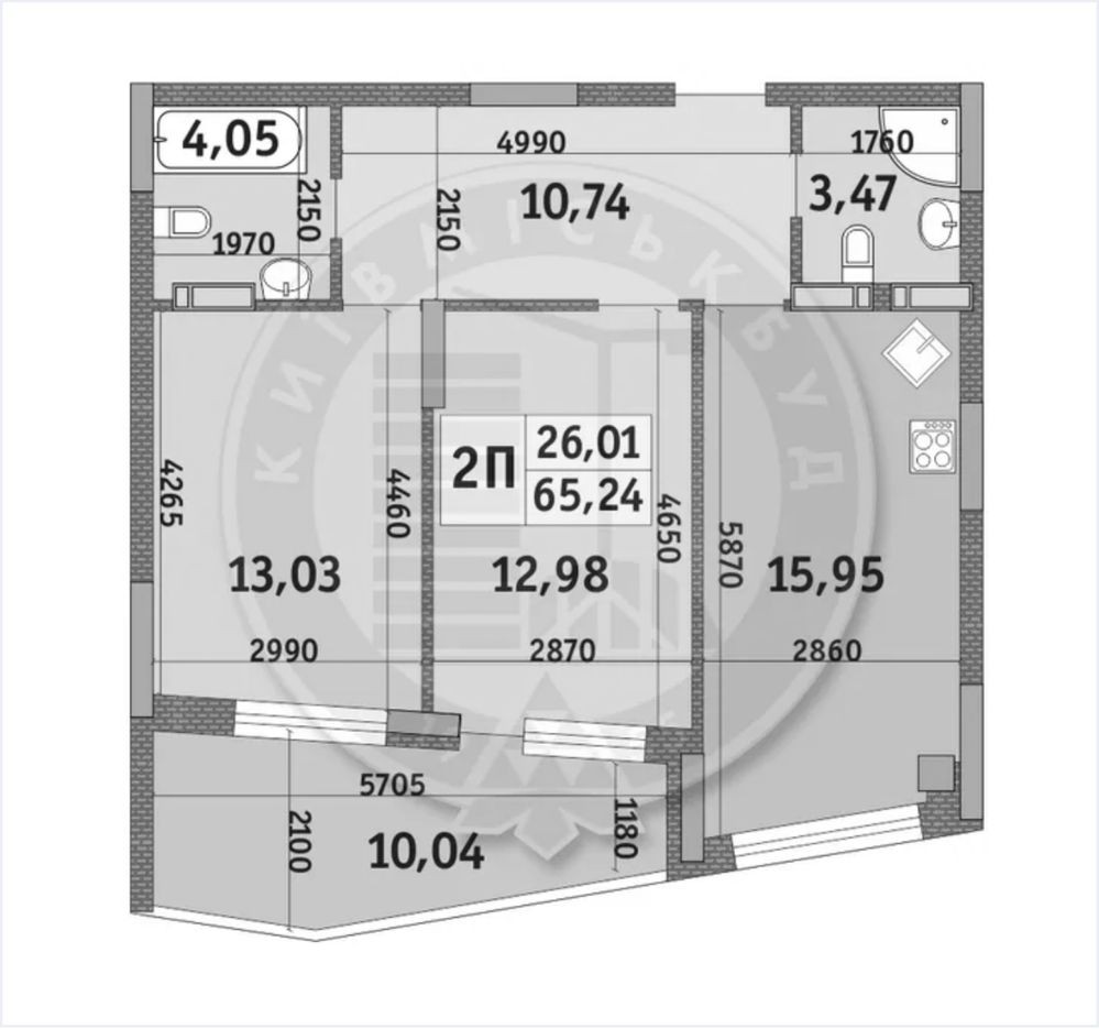 • 2-кімнатна — 64,9 м²
