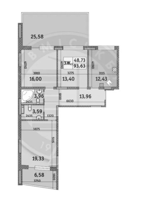 • 3-кімнатна — 94,2 м²