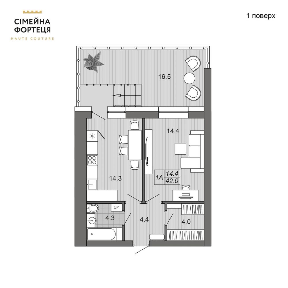 Площа квартири — 42 м²