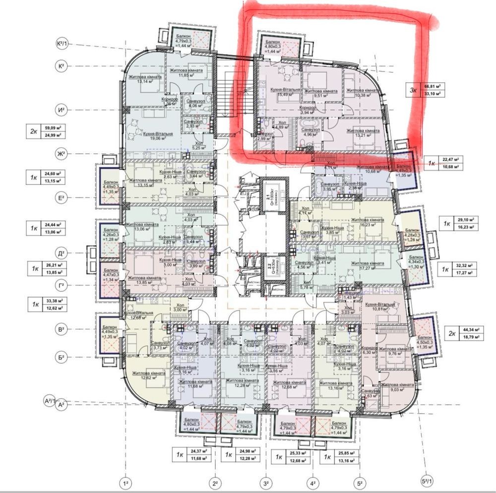 Пропонуємо чудову можливість стати власником квартир з комфортним плануванням у новому цегляному будинку. Квартири розташовані на 4-му і 6-му поверсі, загальна площа — 80,23 і 67м2.