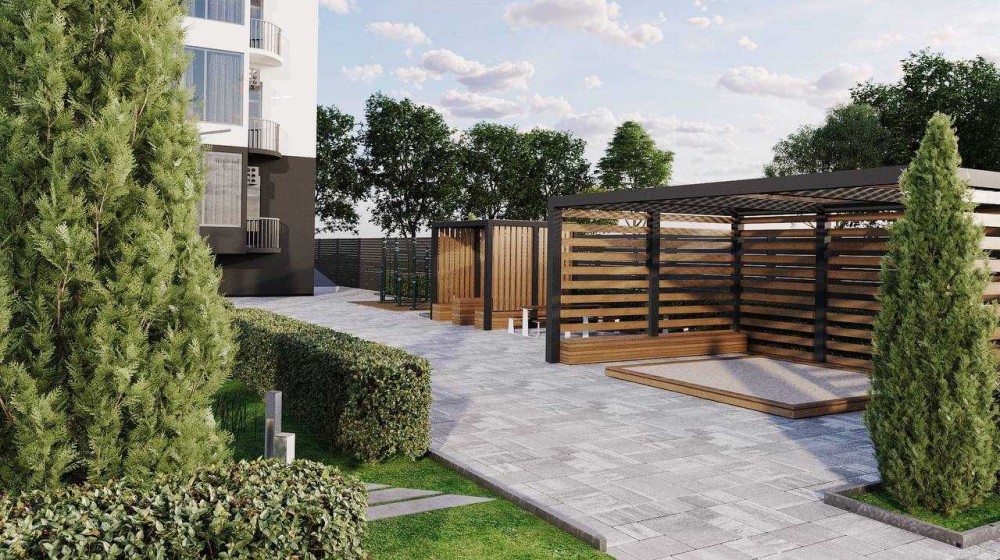 Зелена зона відпочинку з альтанкою.