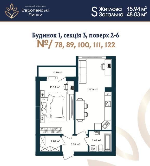 Квартра Європейскі липки 48 кв м