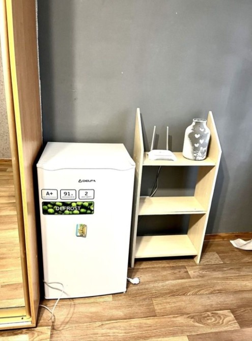 Полностью укомплекована мебелью техникой; раскладной диван, холодильник, шкаф - ккпе, холодильник, СМА. Из техники; бойлер, электрочайник., электроплита.