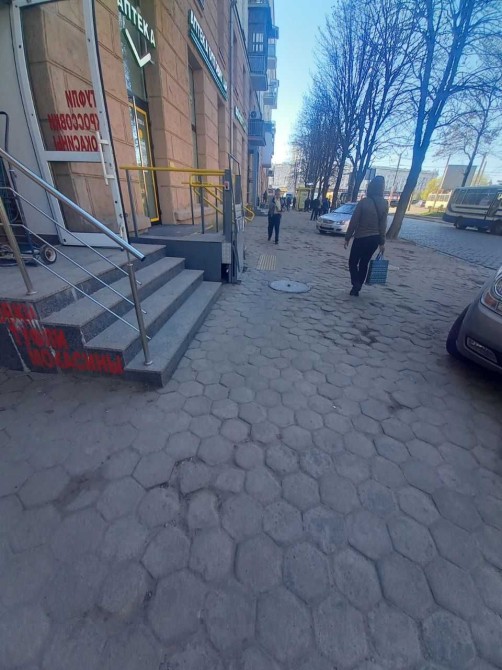 Окремий вхід, великі вікна, гарний трафік, біля зупинки транспорту.