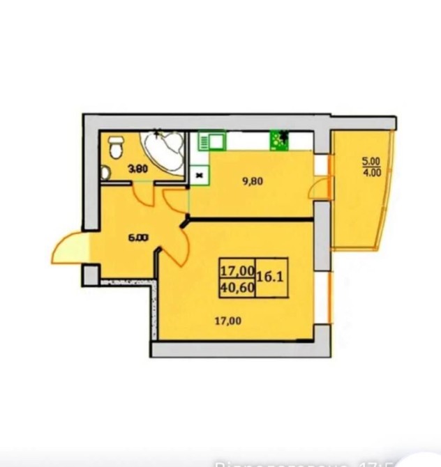 Кухня з виходом на балкон та окрема житлова кімната.