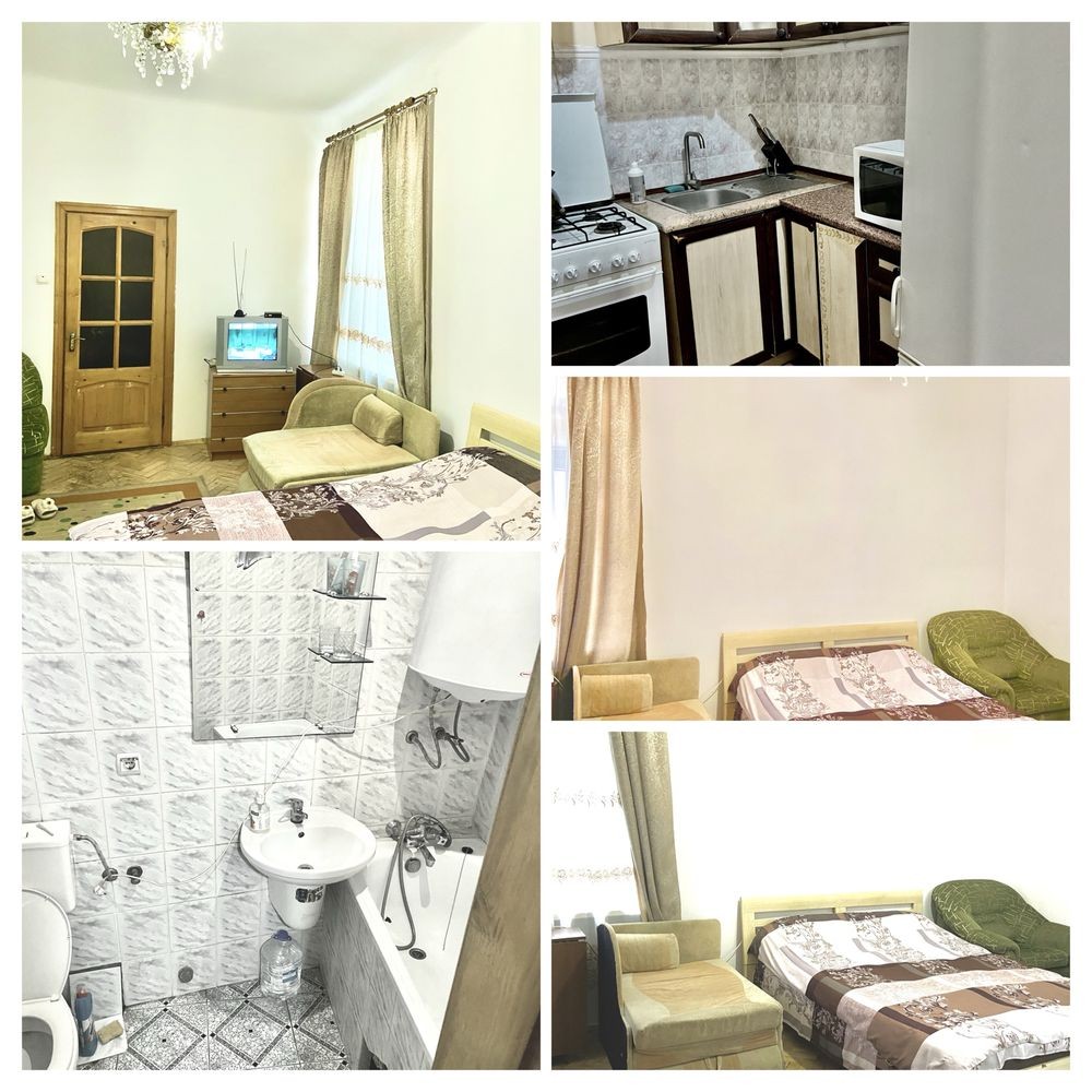 Квартира знаходиться по вул Антоновича (бічна Ст. Бандери) є холодна ,гаряча вода інтернет , холодильник,мікрохвильова піч , духовка ,плита ,електричний чайник , постіль ,рушники , посуд,