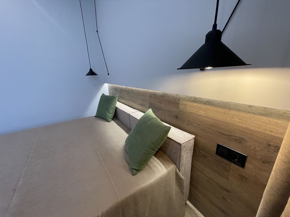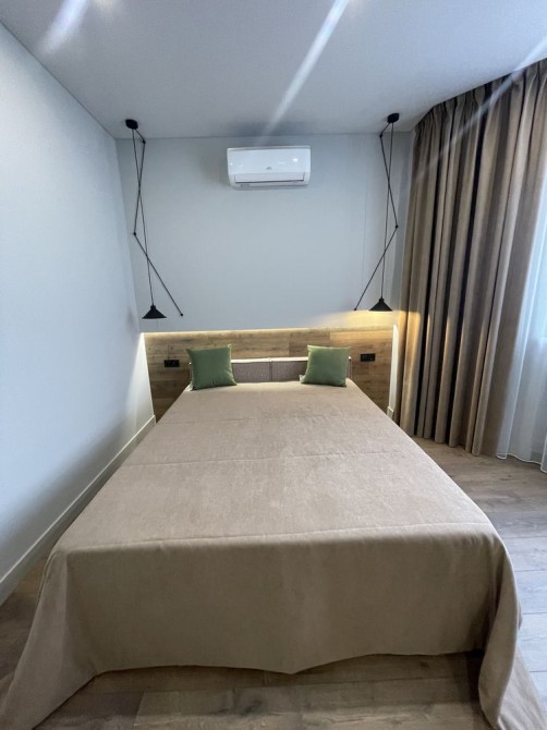 Спальня облаштована стильним та великим ліжком, комодною системою +є кондиціонер та телевізор.