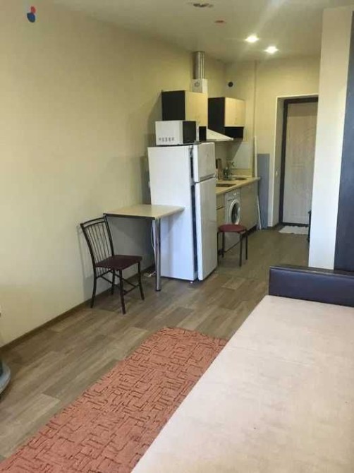 Студия укомплектована всем необходимым: мебель, вытяжка, холодильник, стиралка, мелкая бытовая техника.