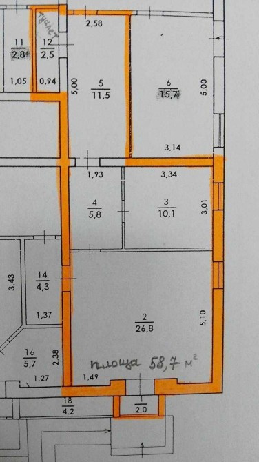 • Загальна площа - 58.7м2
