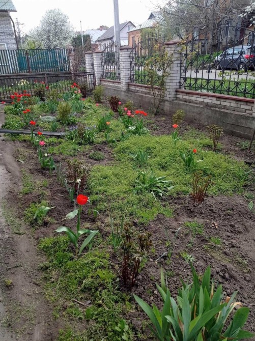 Ділянка рівна, у садку є дерева та виноград.