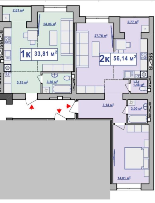 • Двухкомнатная