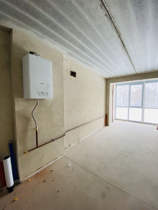 Наповнення: стяжка, піщано-цементна штукатурка капітальних стін, газовий котел