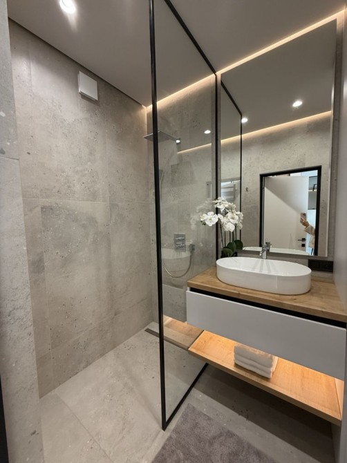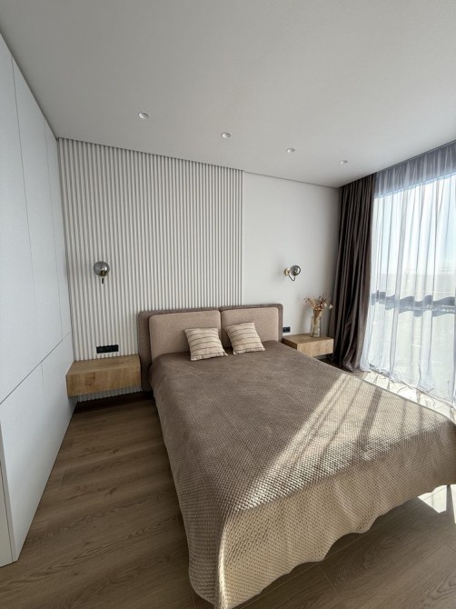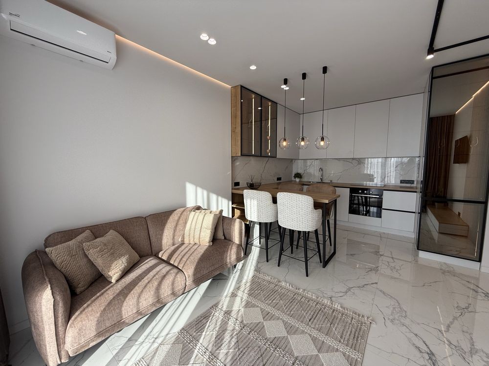 Квартира новенька, з дизайнерьким ремонтом. Загальна площа 45 квадратних метрів , розташована на 5 поверсі (9). Найкраща секція(8) яка не має на проти будинку. Сонячна сторона, що робить квартиру дуже світлою і теплою. Кухня студія з вмонтованою технікою, зона відпочинку з диваном та телевізором і виходом на балкон. Всі вікна у внутрішній двір. Окремо спальня з великим ліжком, туалетним столиком та зручною шафою. Суміжний санвузол з душовою.