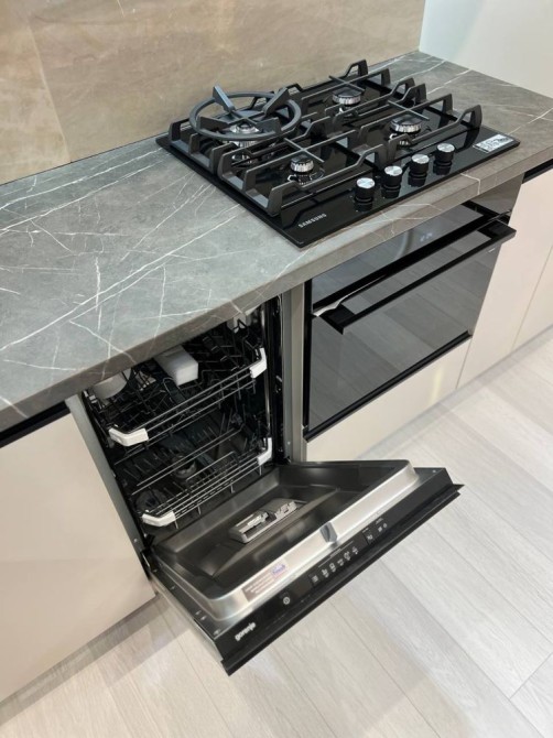 Є вся необхідна техніка та меблі : холодильник, посудомийна машина, духова шафа, газова поверхня, стіл та стільці , якісна кухня та витяжка . В кімнаті велике ліжко та тумби , стіл косметичний та стілець. Ліжко з підйомним механізмом . В коридорі велика гардеробна
