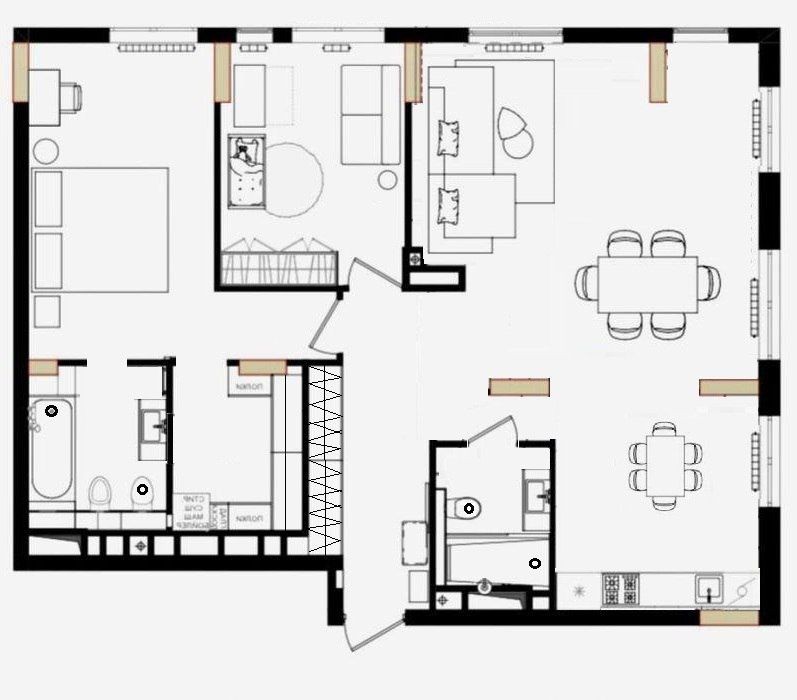 • Трехкомнатная