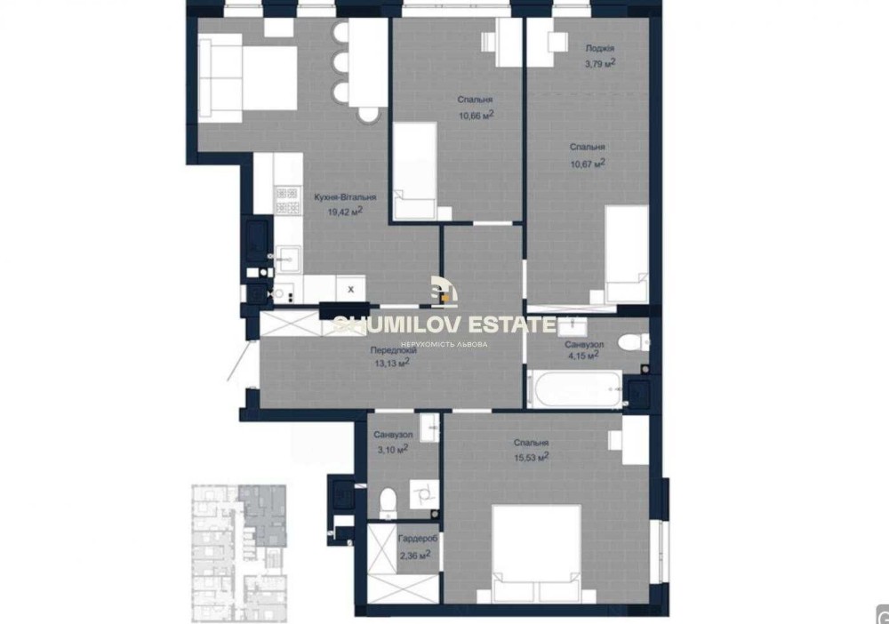 • Трехкомнатная