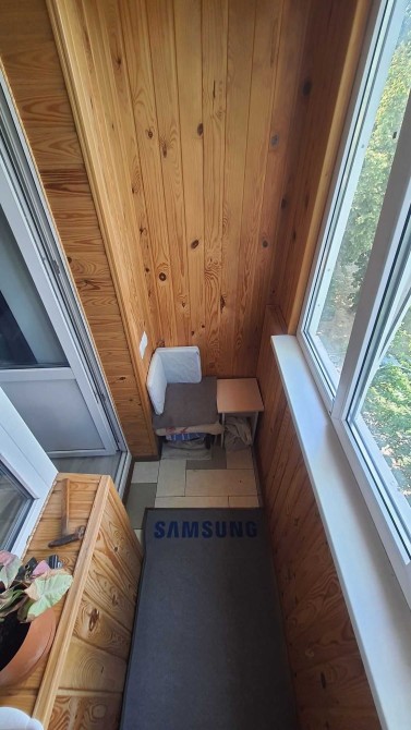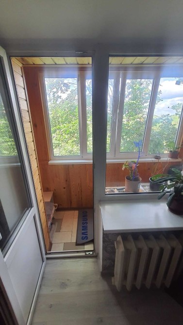 Балкон: обшитий деревом, вікна – пластикові