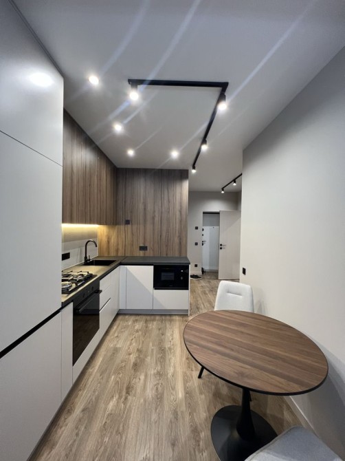 Інтер'єр квартири виконаний за унікальним авторським проєктом професійного архітектора-дизайнера. Грамотне зонування, продумана схема освітлення, меблі на замовлення та сучасна техніка створюють затишний, комфортний та особливий простір.