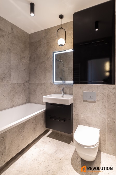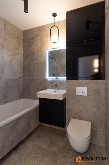 • Простора та функціональна ванна кімната з різними джерелами світла, великою ванною і зручними системами зберігання, а також електричним теплим підлогою.