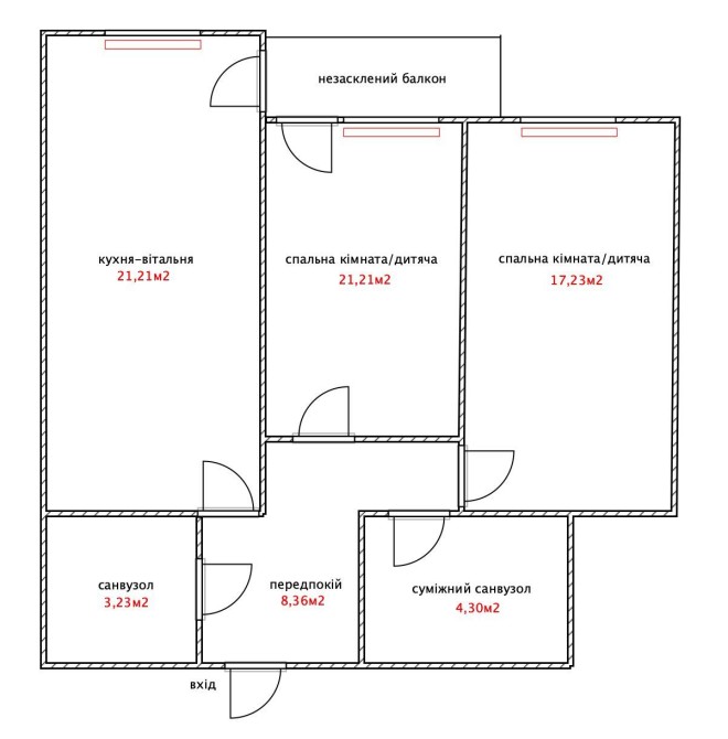 • Кількість кімнат: 2 кімнати + кухня-вітальня