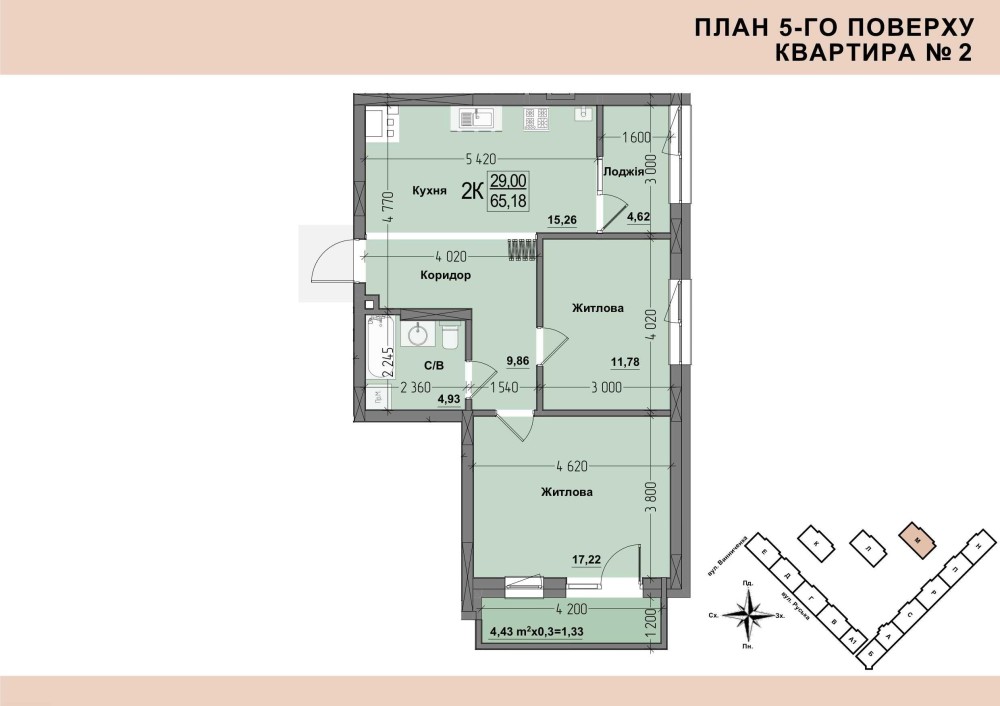 • Общая площадь 65.18 м2