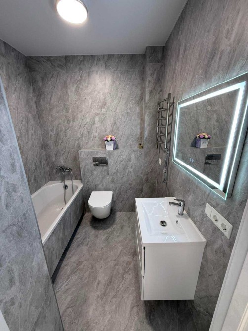 Квартира світла та простора: велика кімната площею 17 кв.м, кухня 15 кв.м, простора гардеробна. Встановлено водяні підігріви під плитку у всіх відповідних зонах.