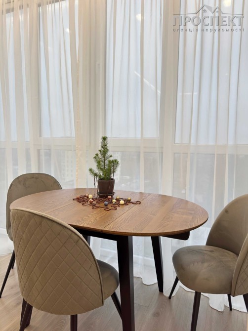 Кухня та меблі виготовлені на замовлення з преміальних матеріалів Saviolla, Cleaf, Eger. Встановлена вбудована техніка: холодильник, індукційна варильна поверхня, духова шафа, мікрохвильова піч, посудомийна машина, прально-сушильна машина, бойлер, кондиціонер. Для комфорту — водяна тепла підлога, підготовка під ДБЖ, стабільне водопостачання. Великі панорамні вікна наповнюють квартиру світлом та відкривають приємний краєвид на місто.