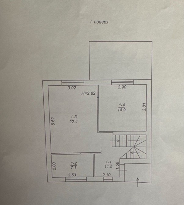 Перший поверх: кухня студія, санвузол, кімната, котельня/пральна.