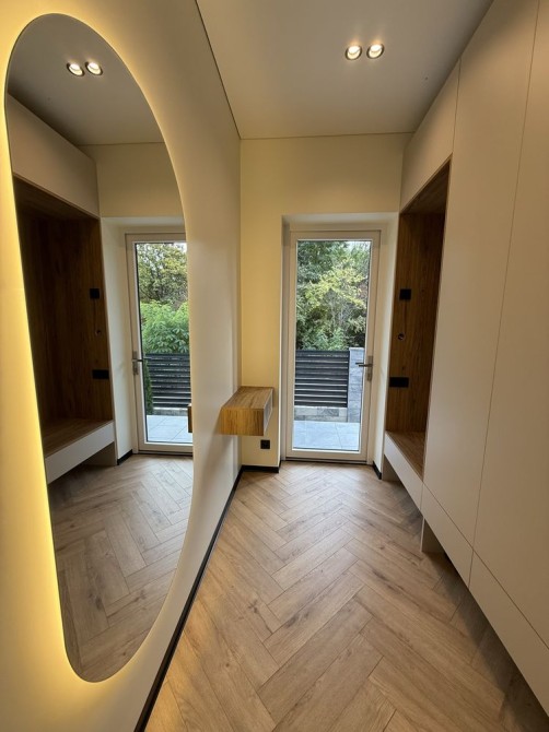 Розташований у тихому зеленому районі поруч із лісом, він дарує відчуття спокою та приватності, водночас залишаючись у межах міста — отже, уся інфраструктура (школи, магазини, транспорт) поруч.