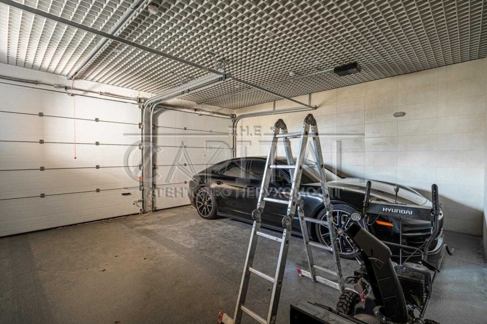1-й поверх: вітальня з виходом на терасу, кухня з додатковою скритою кухнею, їдальня, кабінет, ігрова кімната, 2 санвузли, гардеробна, комори, котельня, гараж на 2 авто.