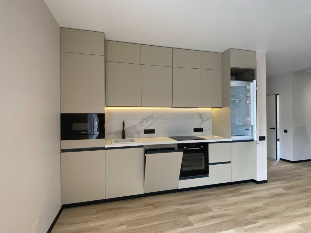 Встановлена якісна кухня з вбудованою технікоюмікрохвильова піч, посудомийка