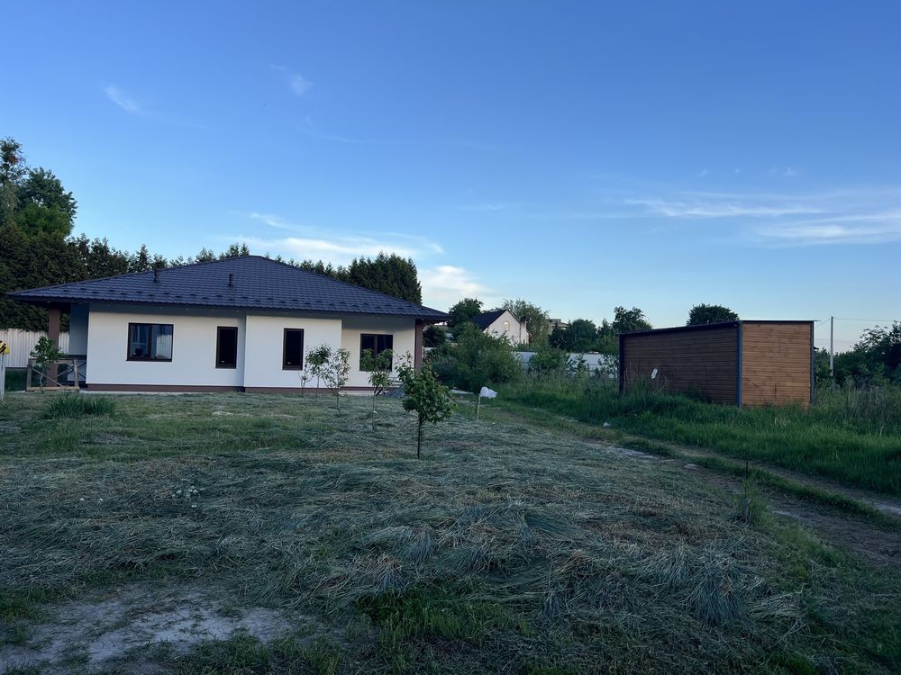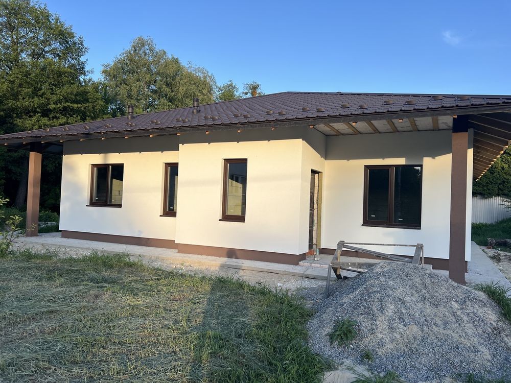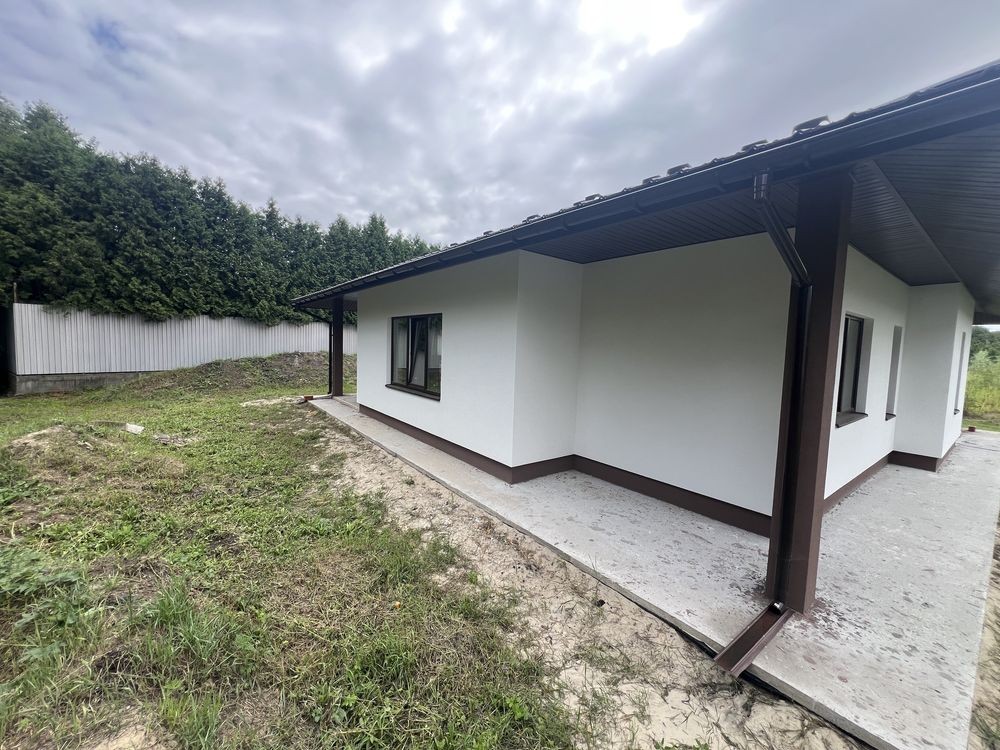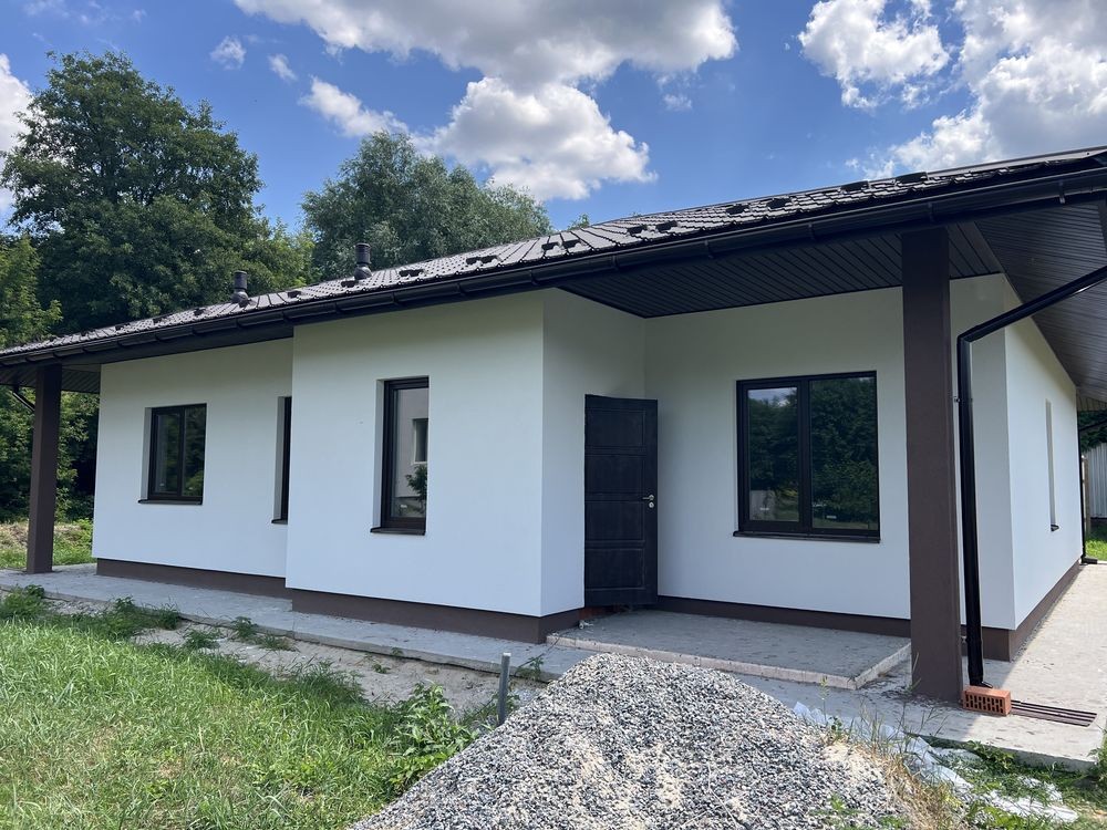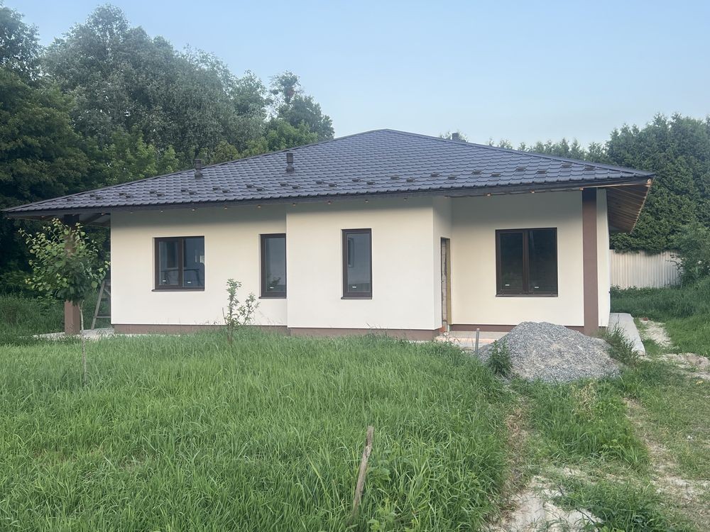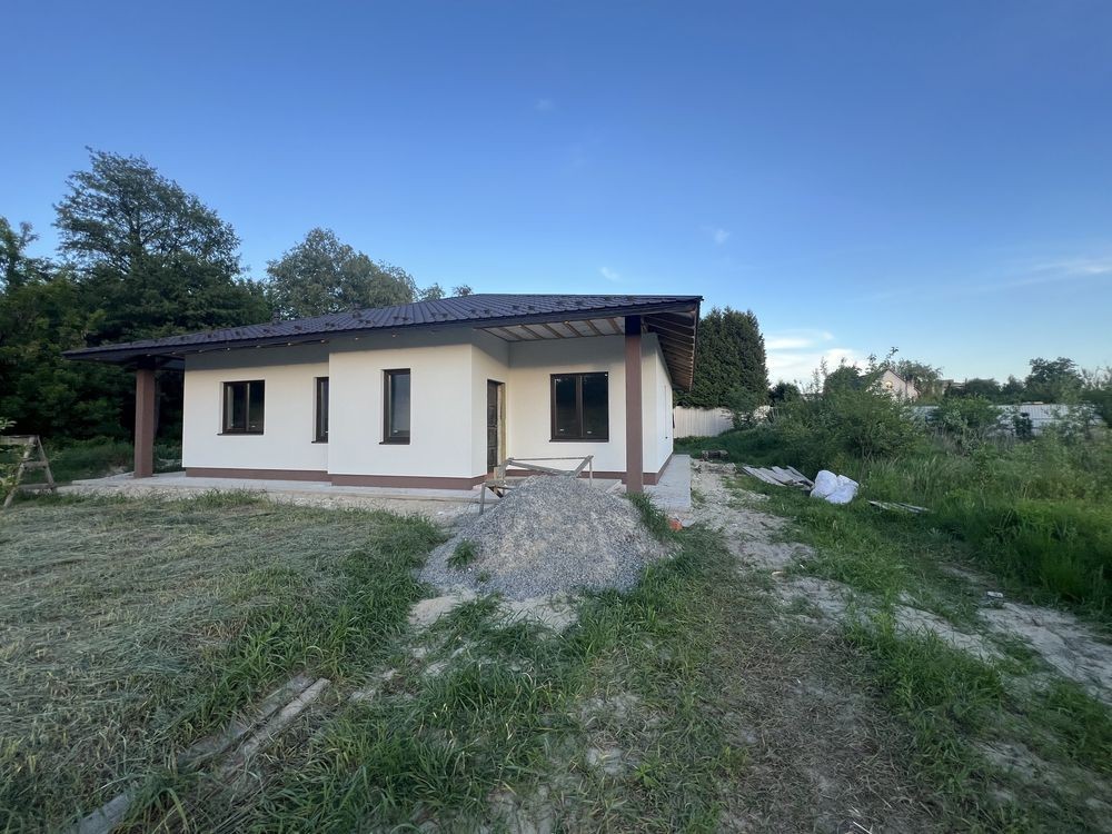 Продається новий стильний дім площею 130 кв з 3 окремими кімнатами де з двух є вихід на терасу, площа ділянки 6,5 сотих в тихому місті поруч біля школи і дитячого садочку. До зупинки та магазину 5-7 хв пішки, поруч Нова Пошта та багато дитячих майданчиків.