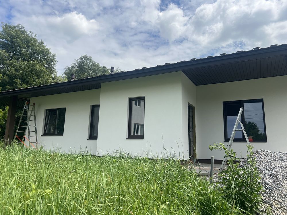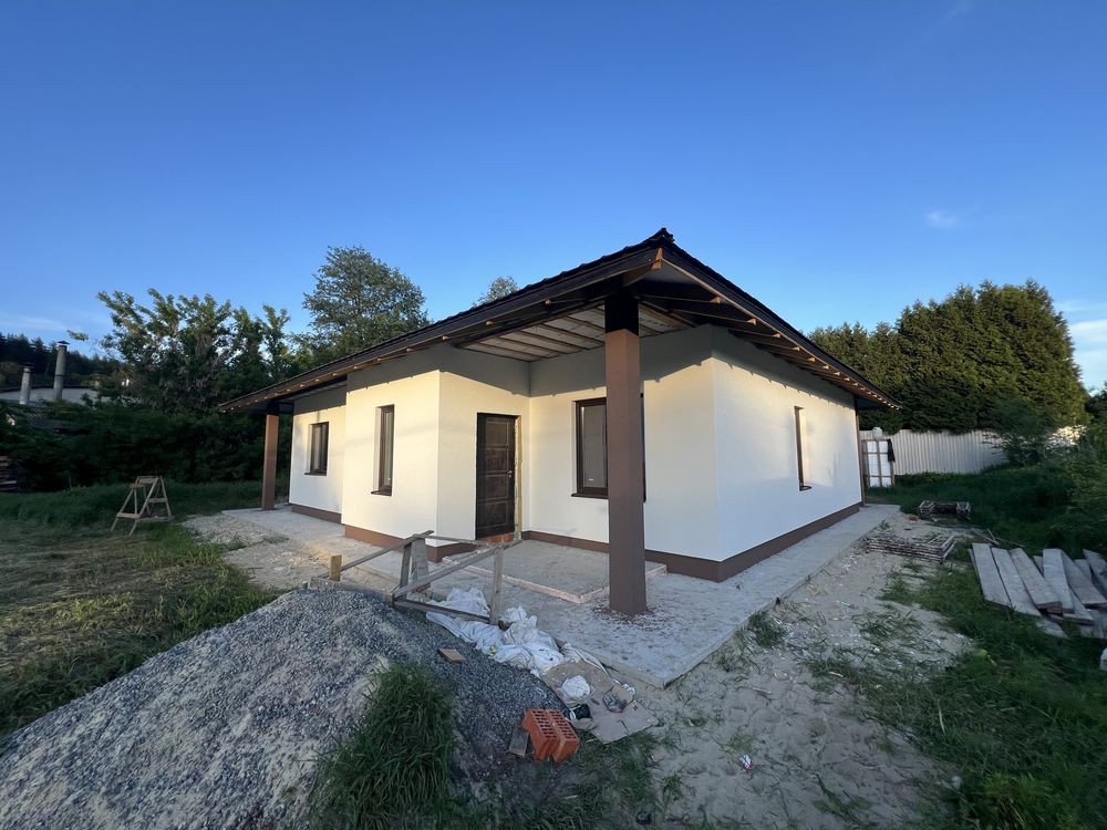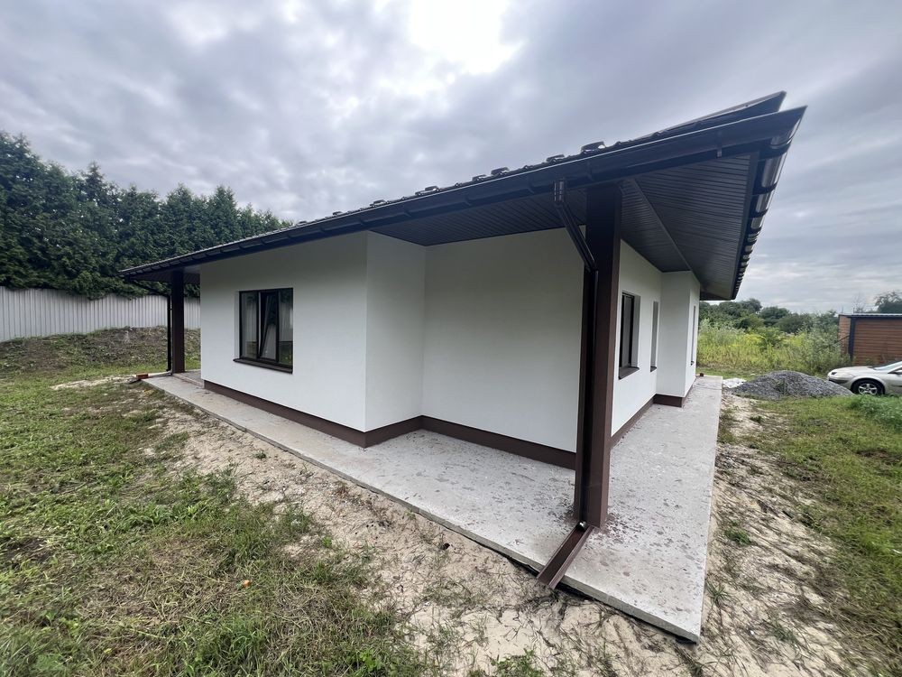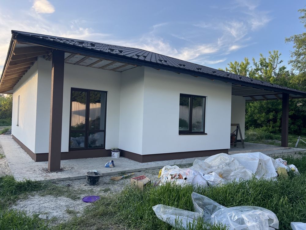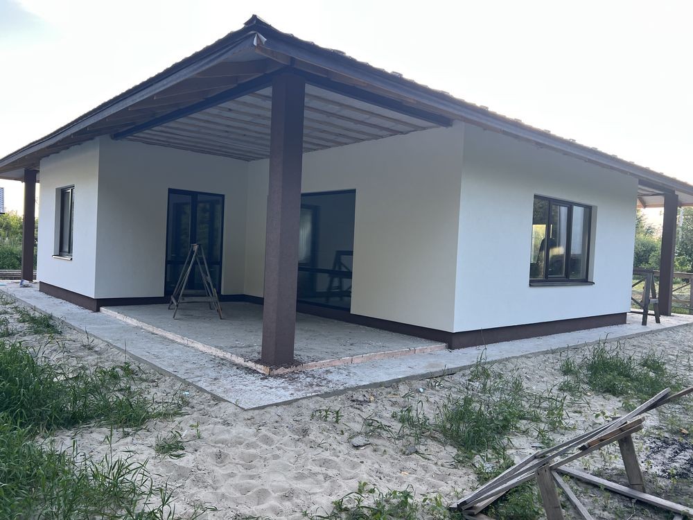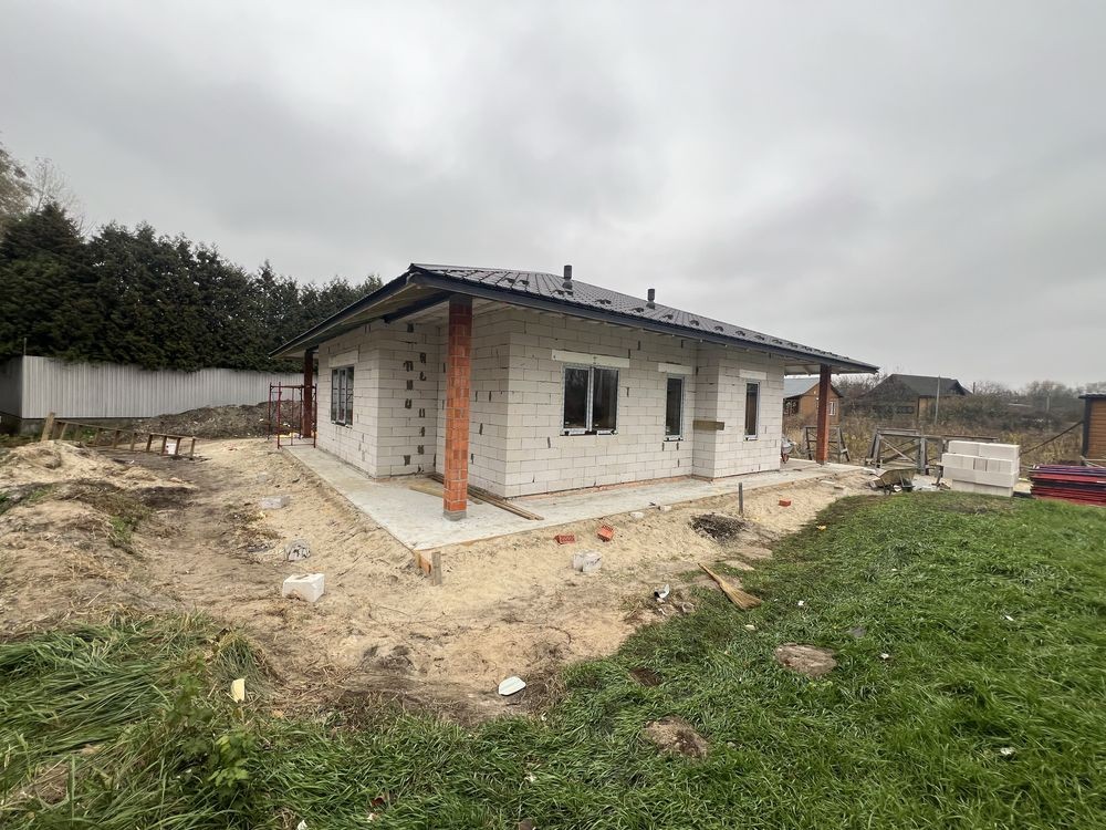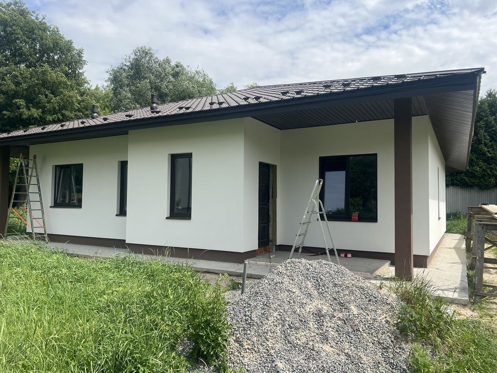 Продається новий стильний дім площею 130 кв з 3 окремими кімнатами де з двух є вихід на терасу, площа ділянки 6,5 сотих в тихому місті поруч біля школи і дитячого садочку. До зупинки та магазину 5-7 хв пішки, поруч Нова Пошта та багато дитячих майданчиків.