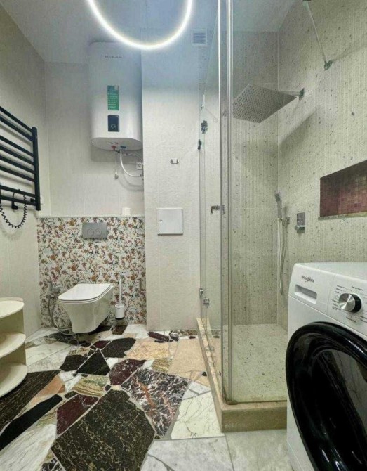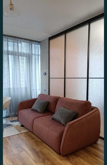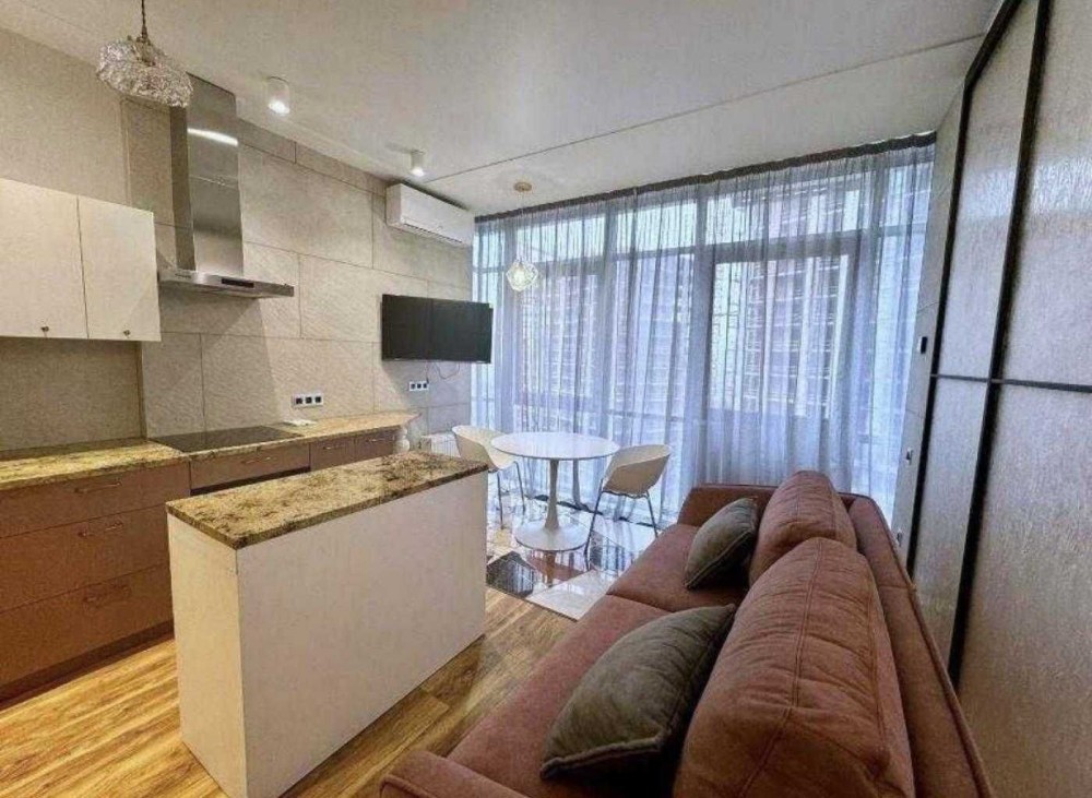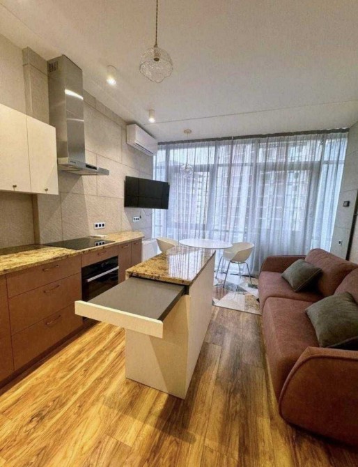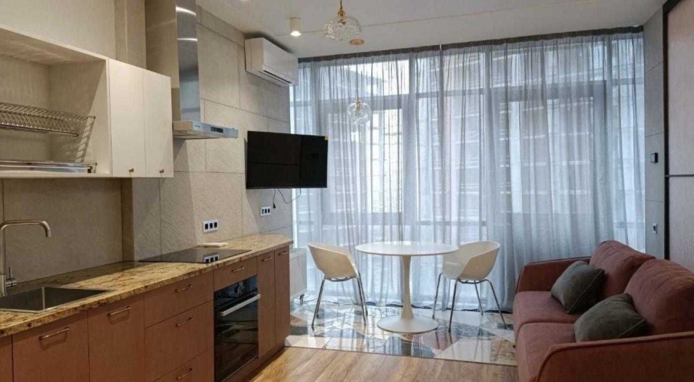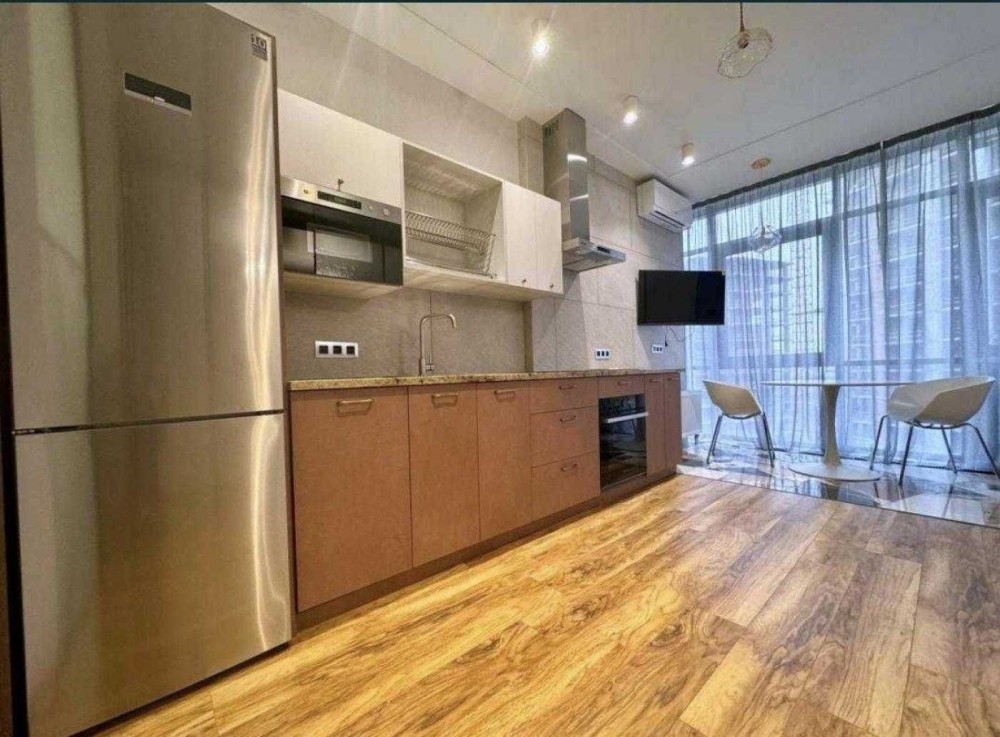 Квартира повністю мебльована та оснащена технікою. Є кондиціонери, холодильник, варильна поверхня, духова шафа, мікрохвильовка, посудомийна машина, пральна машина з сушаркою.